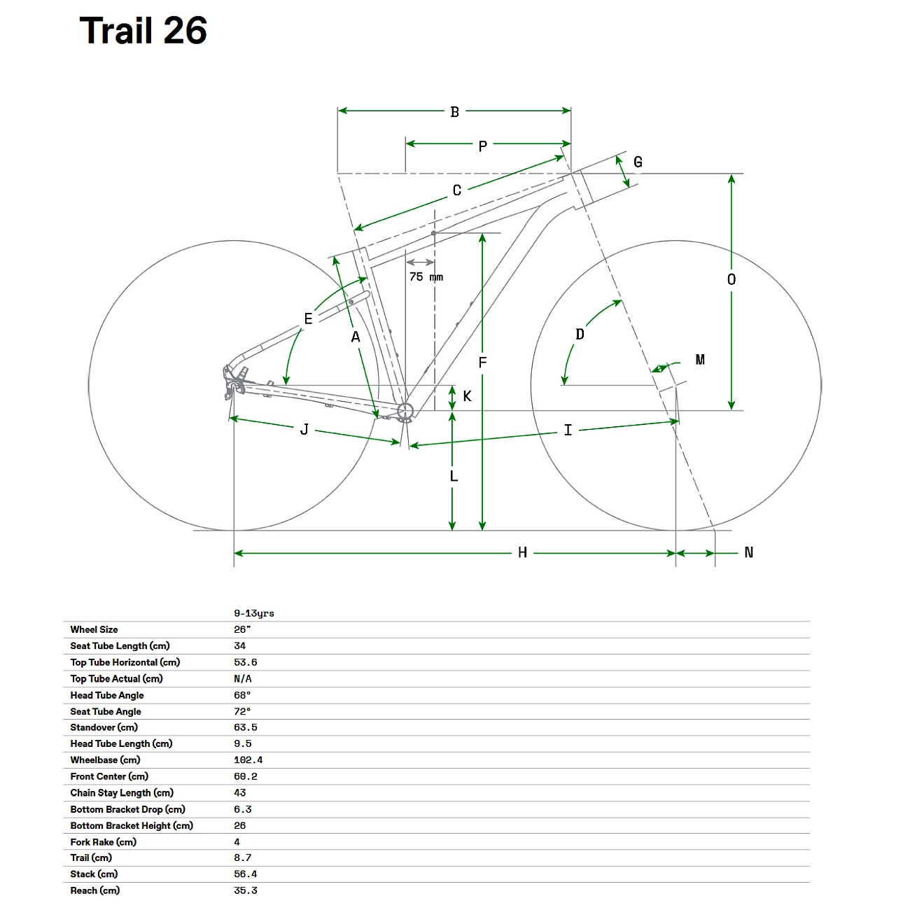 Les roues pleine grandeur de 26 pouces mangent les bosses au petit déjeuner et roulent sur les racines avec facilité. Elles sont plus maniables que les roues plus grandes de 27,5 pouces que l’on trouve sur de nombreux vélos pour adultes et permettent de garder une hauteur basse pour la stabilité et beaucoup d’espace pour grandir.