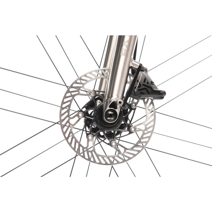 Les vélos polyvalents sont une chose en soi. Si l’on s’essaie à de nombreuses disciplines, on court le risque de ne rien savoir faire correctement. Ce n’est pas le cas de l’Aristos CX Gravel. C’est un sportif de bout en bout, la géométrie est raide, l’empattement court, le vélo est donc agile et maniable dans les virages serrés. Avec des pneus de course étroits, il fait également bonne figure comme vélo de route. Les puissants freins à disque résistent aussi bien aux conditions difficiles de boue et d’humidité en tout-terrain qu’aux vitesses élevées sur l’asphalte. Les rotors de 160 mm offrent une sécurité et une fiabilité maximales. En accord avec sa grande polyvalence, le CX est équipé de nombreux œillets filetés – des porte-bidons peuvent être montés, tout comme des garde-boue et un porte-bagages. Les axes de pédalier enfichables et le boîtier de pédalier Pressfit apportent une touche de modernité en matière de normes de montage.