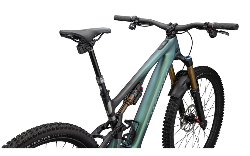 Tout nouveau cadre Levo SL SW, carbone Fact 11m, extension d’amortisseur en carbone, débattement de 150mm, angle de direction réglable, hauteur du boîtier de pédalier et compatible avec les roues de 27,5 ou 29″.
