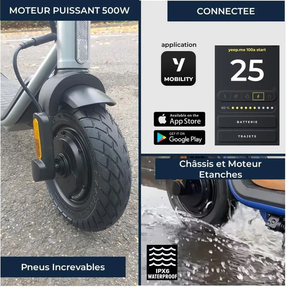 Trottinette électrique YEEP.ME 100a start – 10″ 500W 30km – Garantie 5 ans